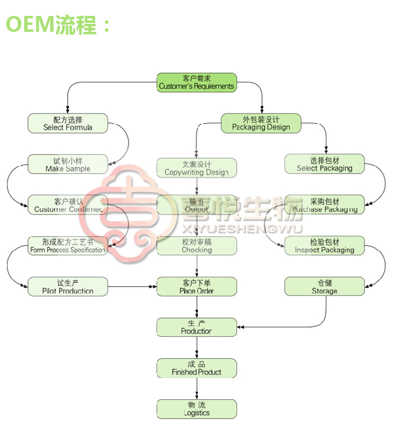 1. 按客户品牌产品定位和要求打样板,确定产品配方;